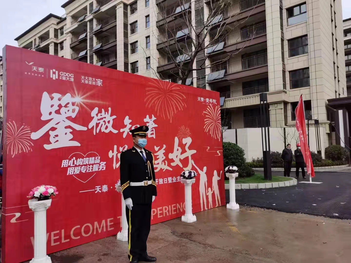 活动入口增设防疫点,设一米线、专人查阅健康码、测体温,并在活动区域内酒精消毒,并在签到处准备防疫物资,确保每个细节都完美而周到,无不彰显着天泰·金大地至真至诚的服务理念。对于期盼已久的业主而言,龙门架及单元门“欢迎回家”四个字是最动听的情话,活动入口服务人员,为到场的业主们送上最真挚的问候,“欢迎回家”,让到来的业主在进门前感受到回家的温暖,亲切、高效的服务得到了业主们的认可。